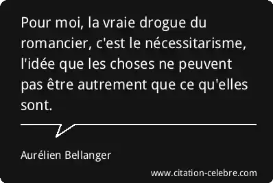 Pour moi, la vraie drogue du romancier, c'est le nécessitarisme, l'idée que les choses ne peuvent pas être autrement que ce qu'elles sont.