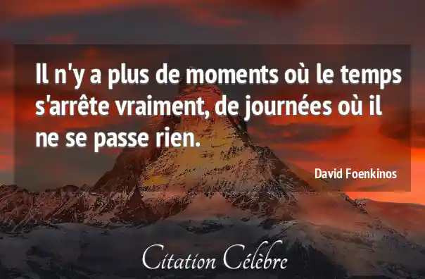 Il n'y a plus de moments où le temps s'arrête vraiment, de journées où il ne se passe rien.