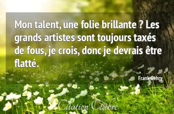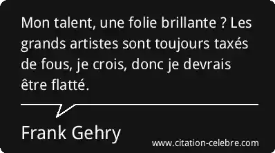 Mon talent, une folie brillante ? Les grands artistes sont toujours taxés de fous, je crois, donc je devrais être flatté.