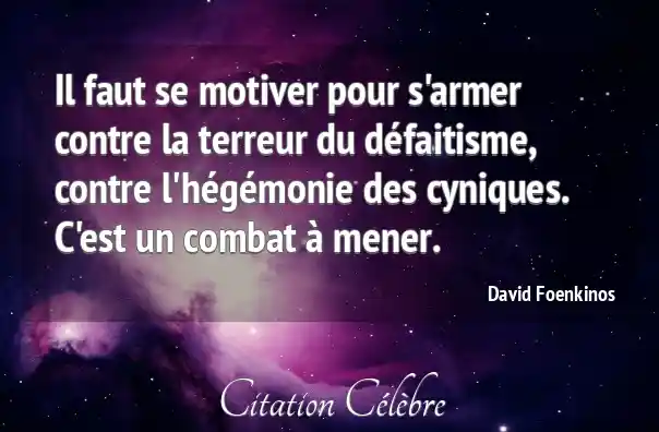 Il faut se motiver pour s'armer contre la terreur du défaitisme, contre l'hégémonie des cyniques. C'est un combat à mener.