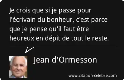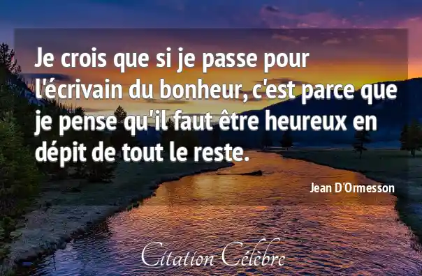 Je crois que si je passe pour l'écrivain du bonheur, c'est parce que je pense qu'il faut être heureux en dépit de tout le reste.