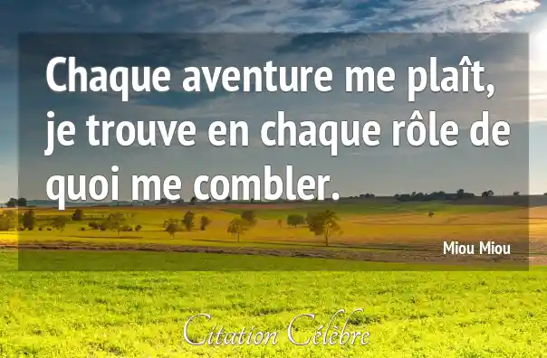 Chaque aventure me plaît, je trouve en chaque rôle de quoi me combler.