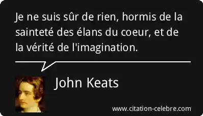 Je ne suis sûr de rien, hormis de la sainteté des élans du coeur, et de la vérité de l'imagination.