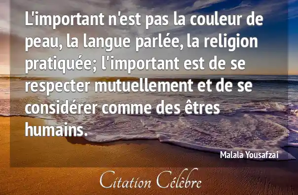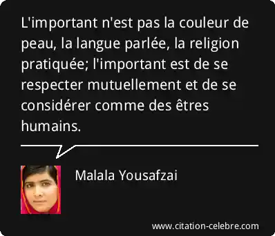 L'important n'est pas la couleur de peau, la langue parlée, la religion pratiquée; l'important est de se respecter mutuellement et de se considérer comme des êtres humains.