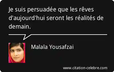 Je suis persuadée que les rêves d'aujourd'hui seront les réalités de demain.
