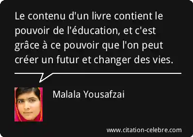 Le contenu d'un livre contient le pouvoir de l'éducation, et c'est grâce à ce pouvoir que l'on peut créer un futur et changer des vies.