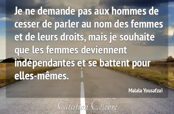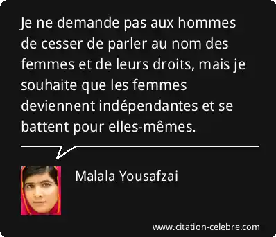 Je ne demande pas aux hommes de cesser de parler au nom des femmes et de leurs droits, mais je souhaite que les femmes deviennent indépendantes et se battent pour elles-mêmes.
