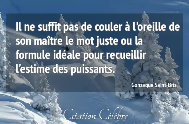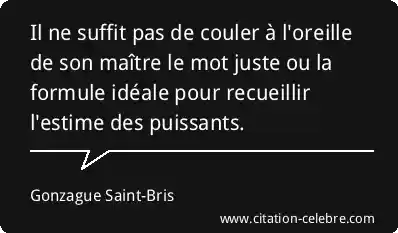 Il ne suffit pas de couler à l'oreille de son maître le mot juste ou la formule idéale pour recueillir l'estime des puissants.