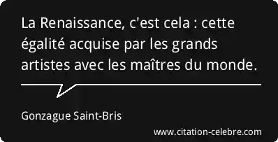 La Renaissance, c'est cela : cette égalité acquise par les grands artistes avec les maîtres du monde.