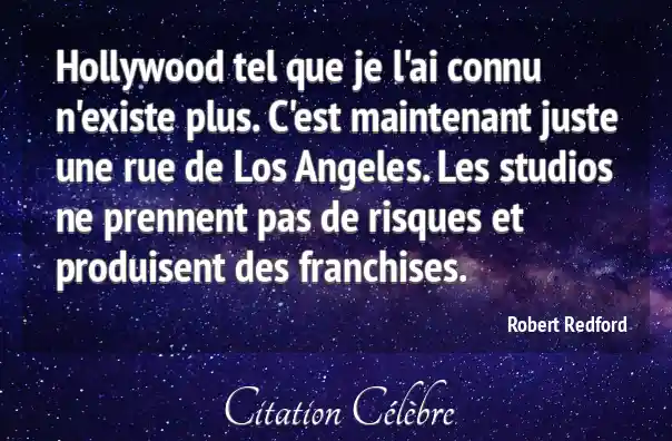 Hollywood tel que je l'ai connu n'existe plus. C'est maintenant juste une rue de Los Angeles. Les studios ne prennent pas de risques et produisent des franchises.