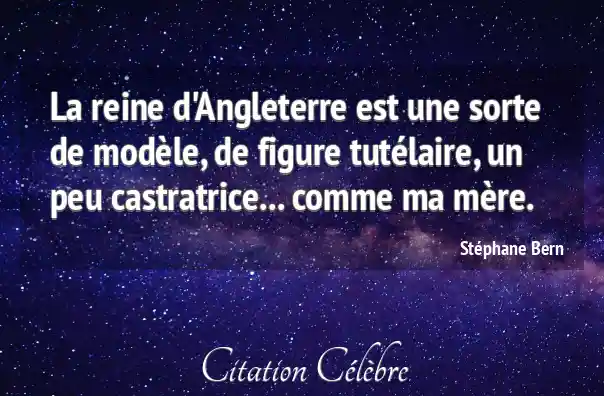 La reine d'Angleterre est une sorte de modèle, de figure tutélaire, un peu castratrice... comme ma mère.