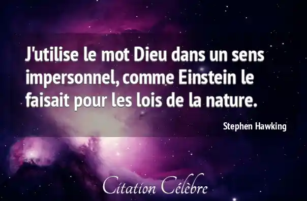 J'utilise le mot Dieu dans un sens impersonnel, comme Einstein le faisait pour les lois de la nature.