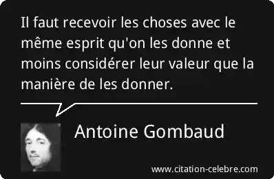 Il faut recevoir les choses avec le même esprit qu'on les donne et moins considérer leur valeur que la manière de les donner.