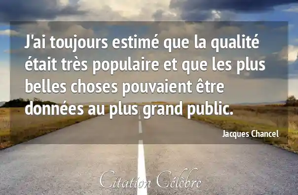 J'ai toujours estimé que la qualité était très populaire et que les plus belles choses pouvaient être données au plus grand public.