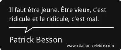 Il faut être jeune. Être vieux, c'est ridicule et le ridicule, c'est mal.