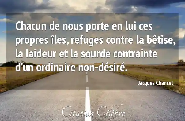 Chacun de nous porte en lui ces propres îles, refuges contre la bêtise, la laideur et la sourde contrainte d'un ordinaire non-désiré.