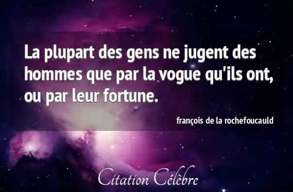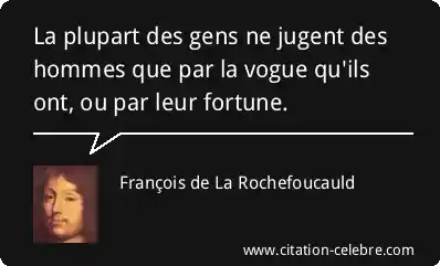 La plupart des gens ne jugent des hommes que par la vogue qu'ils ont, ou par leur fortune.