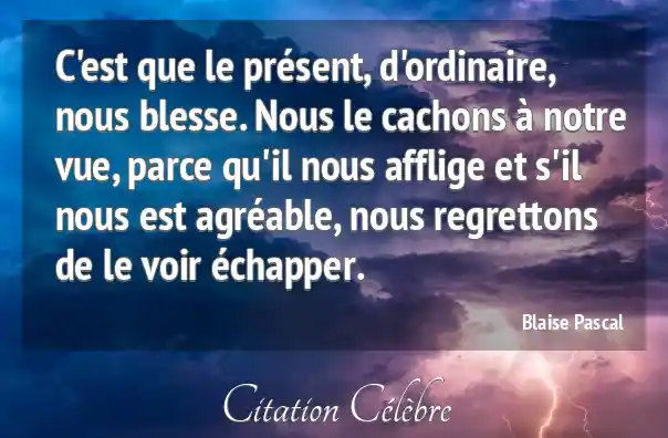 C'est que le présent, d'ordinaire, nous blesse. Nous le cachons à notre vue, parce qu'il nous afflige et s'il nous est agréable, nous regrettons de le voir échapper.
