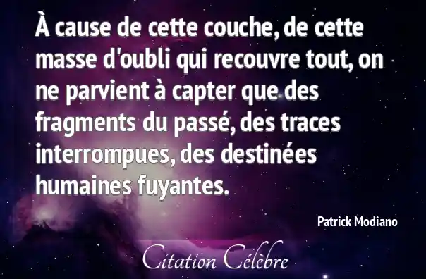À cause de cette couche, de cette masse d'oubli qui recouvre tout, on ne parvient à capter que des fragments du passé, des traces interrompues, des destinées humaines fuyantes.