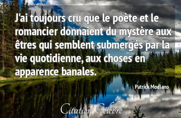 J'ai toujours cru que le poète et le romancier donnaient du mystère aux êtres qui semblent submergés par la vie quotidienne, aux choses en apparence banales.