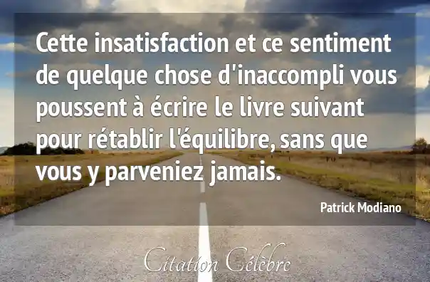 Cette insatisfaction et ce sentiment de quelque chose d'inaccompli vous poussent à écrire le livre suivant pour rétablir l'équilibre, sans que vous y parveniez jamais.