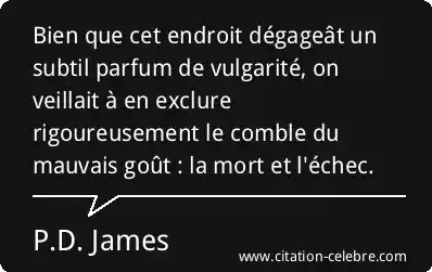 Bien que cet endroit dégageât un subtil parfum de vulgarité, on veillait à en exclure rigoureusement le comble du mauvais goût : la mort et l'échec.