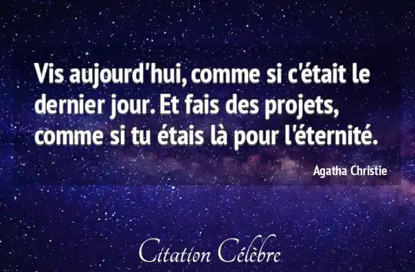 Vis aujourd'hui, comme si c'était le dernier jour. Et fais des projets, comme si tu étais là pour l'éternité.
