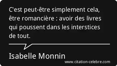 C'est peut-être simplement cela, être romancière : avoir des livres qui poussent dans les interstices de tout.