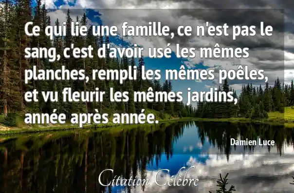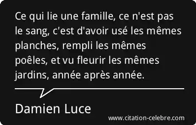 Ce qui lie une famille, ce n'est pas le sang, c'est d'avoir usé les mêmes planches, rempli les mêmes poêles, et vu fleurir les mêmes jardins, année après année.