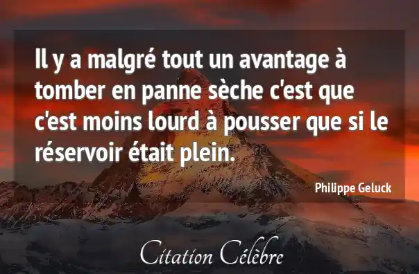 Il y a malgré tout un avantage à tomber en panne sèche c'est que c'est moins lourd à pousser que si le réservoir était plein.