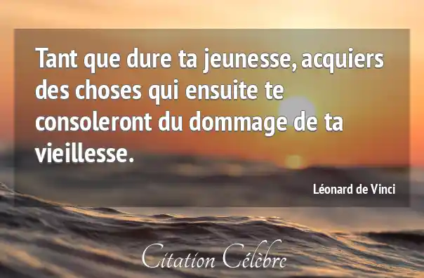 Tant que dure ta jeunesse, acquiers des choses qui ensuite te consoleront du dommage de ta vieillesse.