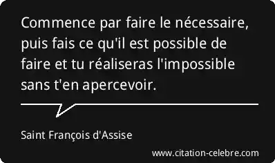 Commence par faire le nécessaire, puis fais ce qu'il est possible de faire et tu réaliseras l'impossible sans t'en apercevoir.