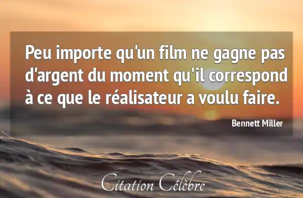 Peu importe qu'un film ne gagne pas d'argent du moment qu'il correspond à ce que le réalisateur a voulu faire.