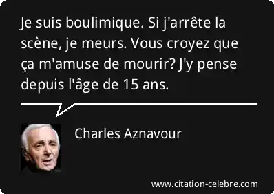 Je suis boulimique. Si j'arrête la scène, je meurs. Vous croyez que ça m'amuse de mourir? J'y pense depuis l'âge de 15 ans.