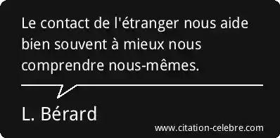Le contact de l'étranger nous aide bien souvent à mieux nous comprendre nous-mêmes.