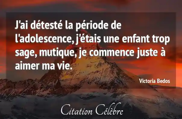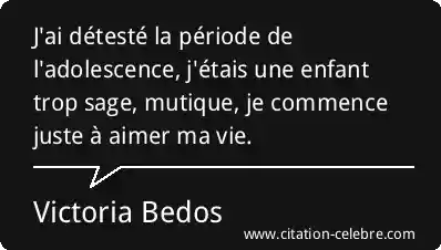 J'ai détesté la période de l'adolescence, j'étais une enfant trop sage, mutique, je commence juste à aimer ma vie.
