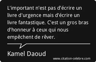 L'important n'est pas d'écrire un livre d'urgence mais d'écrire un livre fantastique. C'est un gros bras d'honneur à ceux qui nous empêchent de rêver.