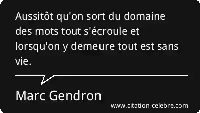 Aussitôt qu'on sort du domaine des mots tout s'écroule et lorsqu'on y demeure tout est sans vie.