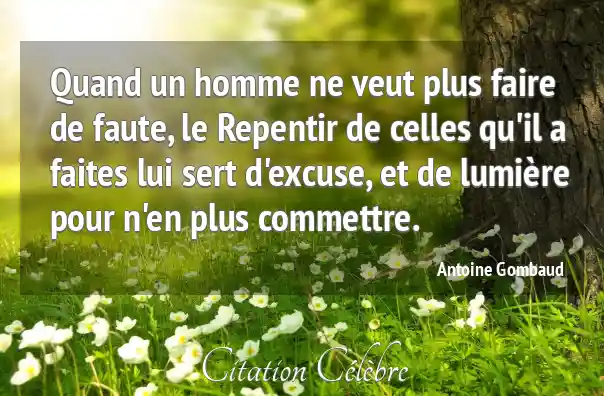 Quand un homme ne veut plus faire de faute, le Repentir de celles qu'il a faites lui sert d'excuse, et de lumière pour n'en plus commettre.