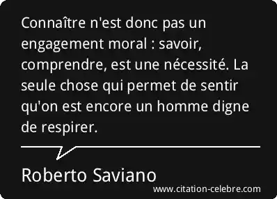 Connaître n'est donc pas un engagement moral : savoir, comprendre, est une nécessité. La seule chose qui permet de sentir qu'on est encore un homme digne de respirer.