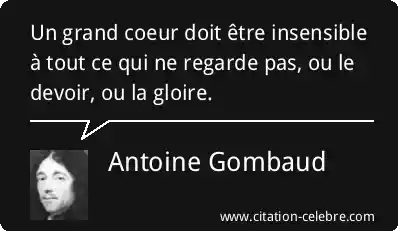 Un grand coeur doit être insensible à tout ce qui ne regarde pas, ou le devoir, ou la gloire.
