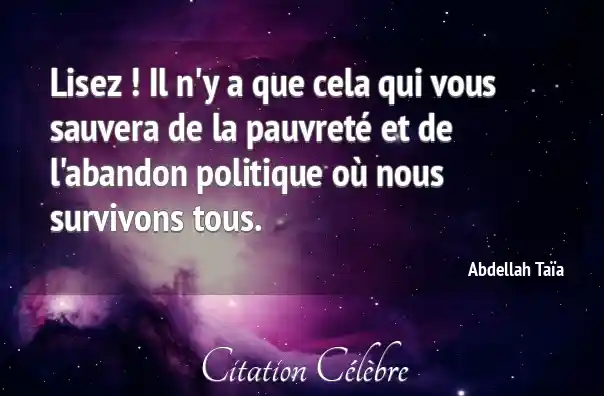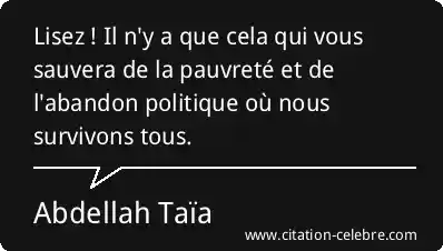Lisez ! Il n'y a que cela qui vous sauvera de la pauvreté et de l'abandon politique où nous survivons tous.