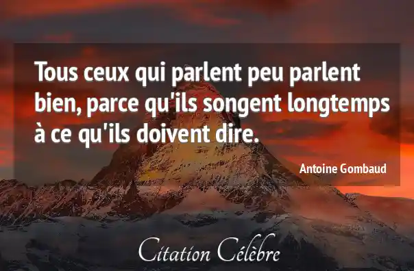 Tous ceux qui parlent peu parlent bien, parce qu'ils songent longtemps à ce qu'ils doivent dire.