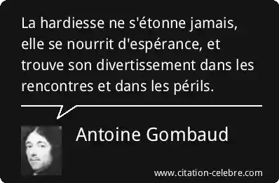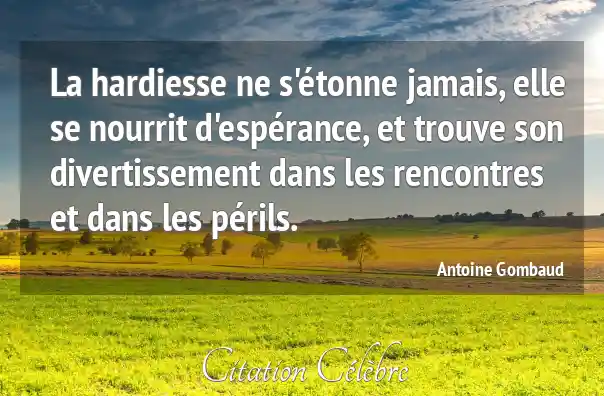 La hardiesse ne s'étonne jamais, elle se nourrit d'espérance, et trouve son divertissement dans les rencontres et dans les périls.