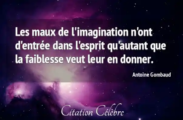 Les maux de l'imagination n'ont d'entrée dans l'esprit qu'autant que la faiblesse veut leur en donner.