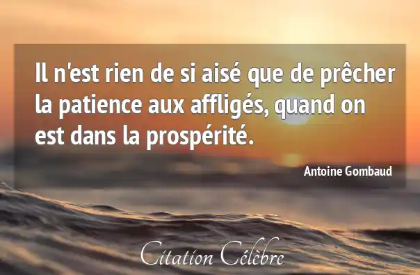 Il n'est rien de si aisé que de prêcher la patience aux affligés, quand on est dans la prospérité.