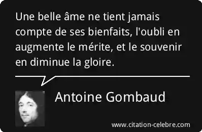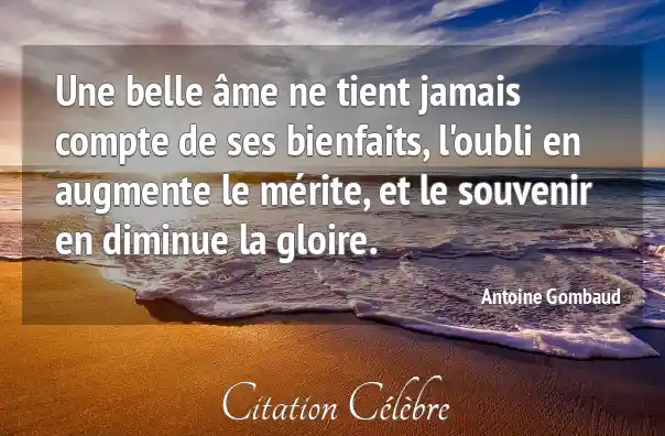 Une belle âme ne tient jamais compte de ses bienfaits, l'oubli en augmente le mérite, et le souvenir en diminue la gloire.