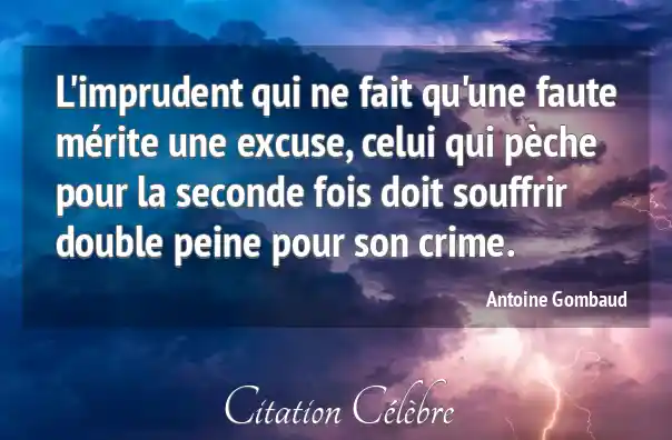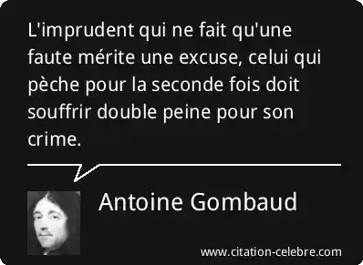 L'imprudent qui ne fait qu'une faute mérite une excuse, celui qui pèche pour la seconde fois doit souffrir double peine pour son crime.