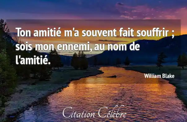 Ton amitié m'a souvent fait souffrir ; sois mon ennemi, au nom de l'amitié.