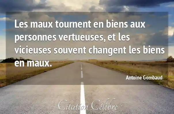 Les maux tournent en biens aux personnes vertueuses, et les vicieuses souvent changent les biens en maux.